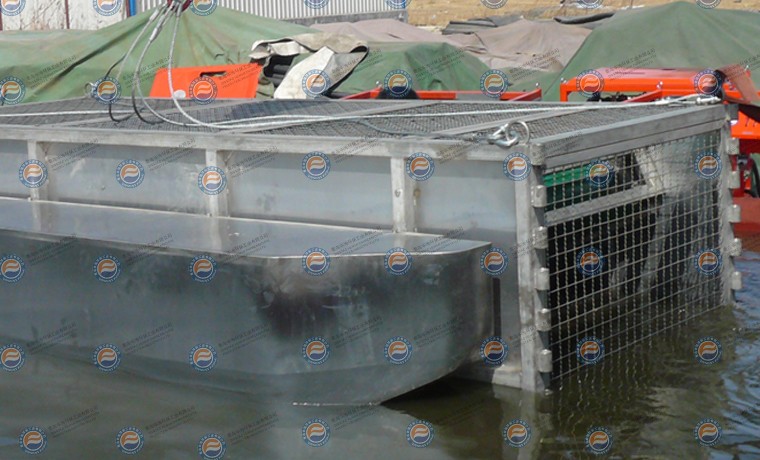 The main unit of the skimmer pushes the oil spills on the water surface down into the water through the loop-shaped tape which declines downward and then the oil rises up and floats in the oil collecting channel so that the oil spills are gathered and pumed away. One end of the belt is above the water surface while another is below the surface in the oil collecting channel. It is driven by the hydraulic motor and hence pressed the oil spills down to the bottom of the channel. The oil will rise up again and float in the oil collecting channel due to its specific gravity less than that of water.